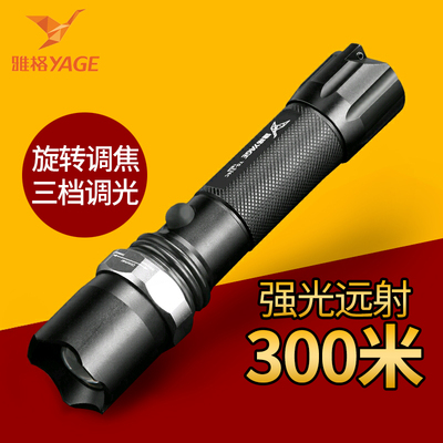 【雅格】LED强光手电筒,可充电式家居,户外探险,防身骑行,远射防水手电。