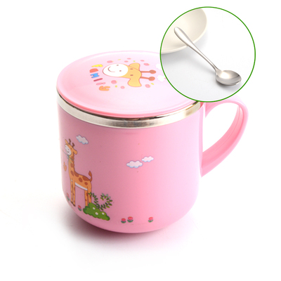 卡通造型,4种颜色可选,内置密封圈防溢,带盖带手柄双层防烫,纯正304食用钢,优质ABS食品级塑料,更卫生更安全,还怕您的孩子不喜欢喝水么。