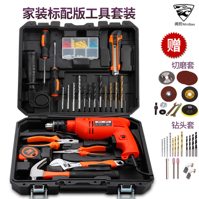 家装标配版工具套装包含有:十字起子、一字起子、副手柄、打墙钻头*4、夹头钥匙、老虎钳、卷尺、羊角锤、美工切、零件盒、麻花钻头*4、木工钻头*4、打孔深度尺、冲击钻、小嘴钳、尖嘴钳、活动扳手、工具箱等。天猫券后拍下155元包邮(选第一个选项)。