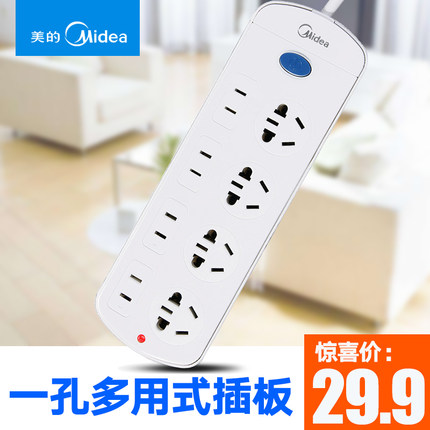 美的大牌,品质保证。优质纯粗铜线 高阻燃材质 宽大插距 安全实用,流线造型,简洁大方美观。家家必备,库存有限,速度抢购啦