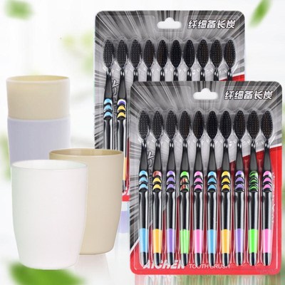 【20支牙刷加送4个杯子】竹炭降解,绿色环保,竹炭软毛,呵护牙龈,独立包装,自带沥水,四色混搭,旅行居家必备。