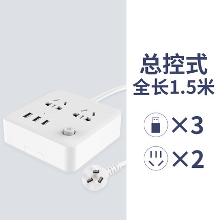 总控式全长1.5米,粗铜线,耐高温,防护门,安全保护,小魔方5孔供电,一键总控,简约轻盈,小米公牛同款69元。 【送运费险】