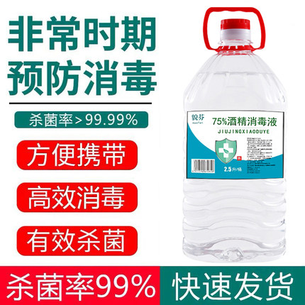 超值5斤装!消字号!75%酒精消毒液,复工必备,用途广泛,医用配方,针对冠状病毒,预防交叉感染,用心呵护健康,给家人一个无菌环境!