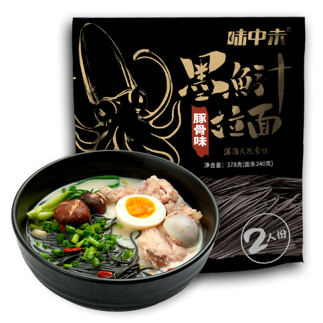 精心挑选优质深海墨鱼,萃取墨鱼汁,揉至优质小麦拉面中,口感劲道爽滑,带着属于海洋的味道!料包丰富,吃出你的范儿【赠运费险】