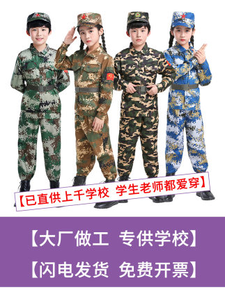 超值的儿童迷彩服套装.透气吸汗,多色可选,质地柔软,光泽度好,无论是户外野营,还是校园演出都是不错的选择。