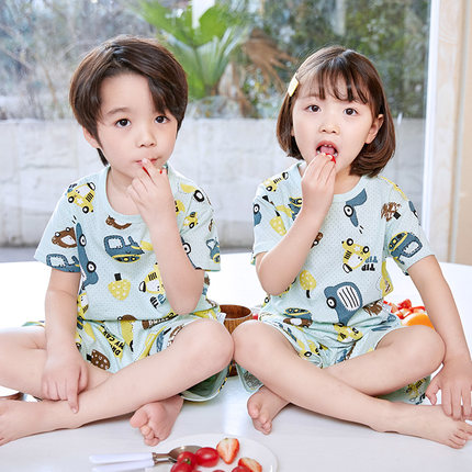 【麦叮酷】中大儿童纯棉睡衣套装,纯棉面料,舒适柔软,呵护宝宝娇嫩的肌肤,让萌宝清凉一夏。