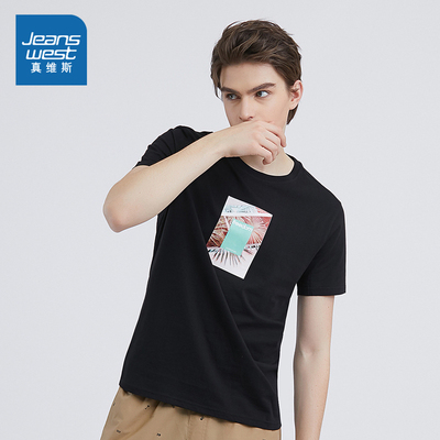 真维斯圆领印花T恤,全绵,修身。三种颜色供你选择,水蓝色,漂白色,黑色。玩色青春,休闲不停歇