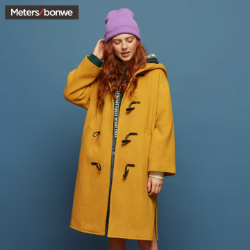 美特斯邦威,优选毛呢面料,连帽长款,舒适挺括版型,不易起球,显瘦遮肉,实用口袋,连帽设计,品质内里,秋冬季节必备的大衣