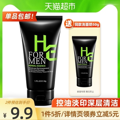 赫恩男士控油冰海泥洁面乳50g/瓶 买1送1;5折+券后9.95元包邮