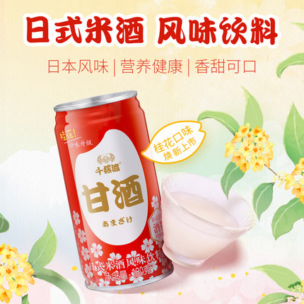 日式米酒风味饮品,桂花口味,气味清香,可爱小巧的樱花罐,安全美味,香甜清爽,双重自然发酵,0香精0脂肪0防腐剂,营养健康!