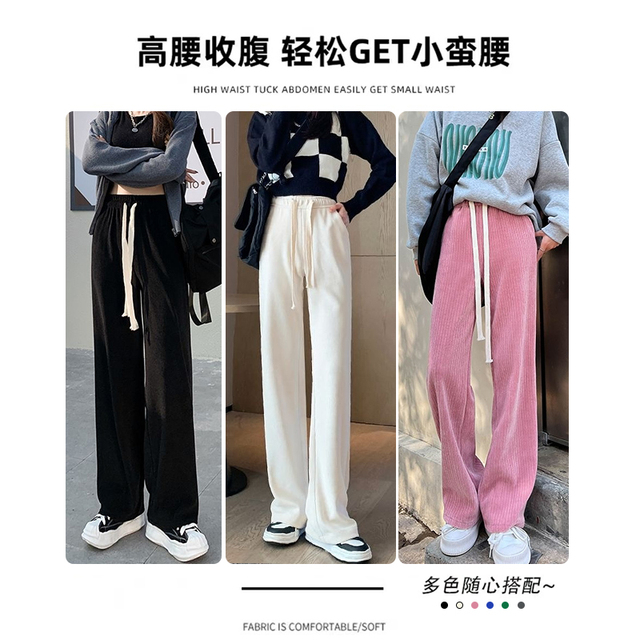 阔腿裤女抽绳高腰韩版直筒裤券后17.9元包邮