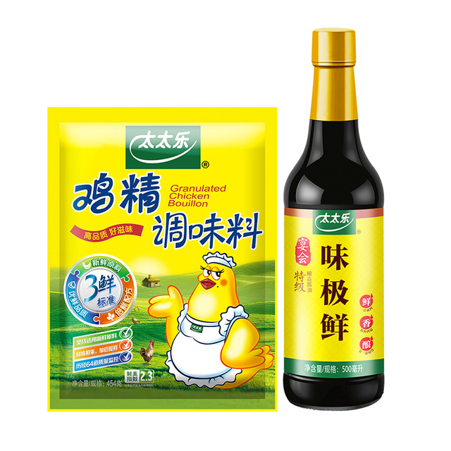 【三鲜鸡精454g+味极鲜酱油500ml,超划算套装!!】出口品质,下厨烹饪美味少不了!!鸡精平时炒菜、煲汤放一点,特别的鲜~原味特鲜级酱油,健康提鲜,炒菜,凉拌都好吃!!【赠运费险】