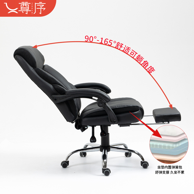 尊序!!!真皮老板椅办公椅,久坐舒服人体工学靠背椅转椅,可躺坐椅电脑椅165°大角度可躺。柔软层公仔棉填充柔软高弹,支撑层高密度回弹海绵填充持久支撑。