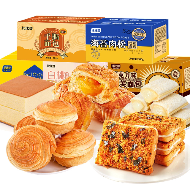 比比赞早餐糕点组合!有手撕面包/海苔吐司/夹心欧包等超多款任选!每款都好吃,搭配牛奶、咖啡都可,营养又健康!