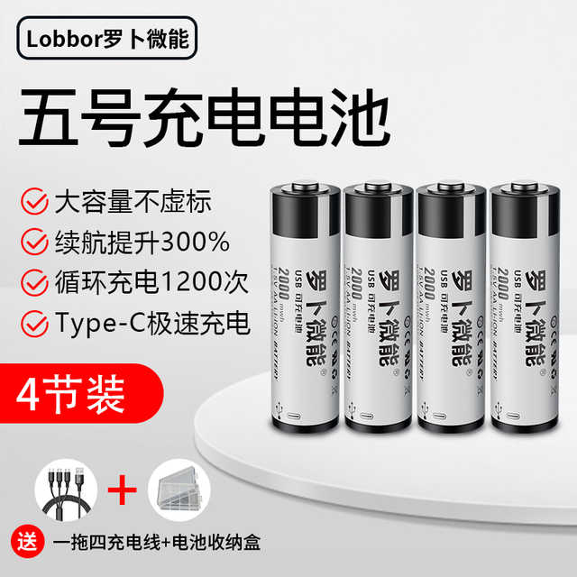 【罗卜微能】usb充电5号锂电池2节,质量保证,持久耐用,适用范围广!电池始终更受信赖,亿万家庭的共同选择,值得信赖!升级无记忆效应工艺,可循环充电约1200次,1节顶1000节传统电池【赠运费险】