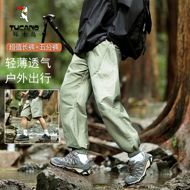 【选2件】潮流休闲裤,长裤短裤都有,轻薄透气,户外出行,裤子腰绳可调节,百搭宽松束脚裤,运动卫裤,长裤子,款式很好的工装裤,还是啄木鸟的!