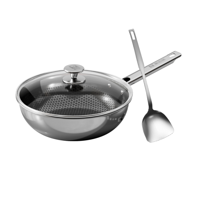 康巴赫不粘锅,28cm煎炒锅+锅铲,租房,家用必备!304不锈钢蜂窝不粘锅炒锅!不挑炉灶燃气电磁炉通用!
