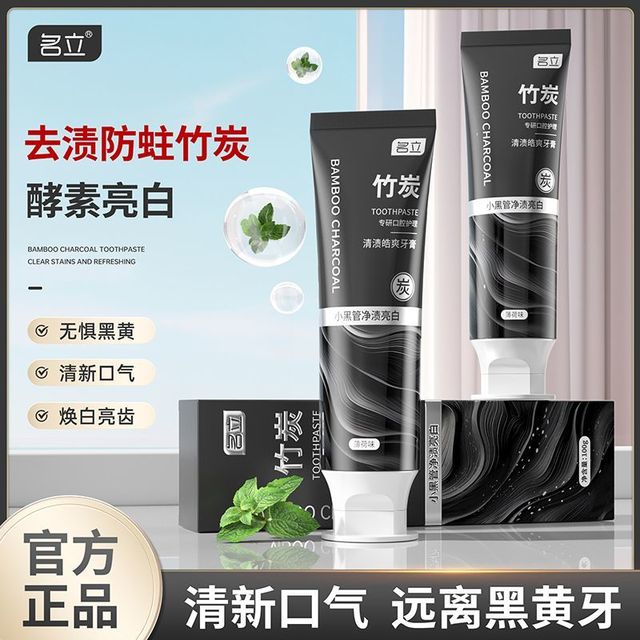 【限时拍】名立竹炭小黑管牙膏美白去黄牙膏2支/200g,到手9.98元,享清新口气活性炭配方,深层洁齿早晚刷一刷,自信笑容每一天!