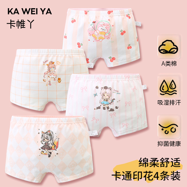 女童薄款纯棉平角四角裤4条劵后11.9元包邮
