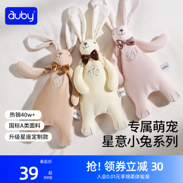 澳贝星座安抚兔新生儿宝宝哄睡神器,安抚玩偶阿贝贝毛绒巾婴儿玩具。专属萌宠,星意小兔系列。