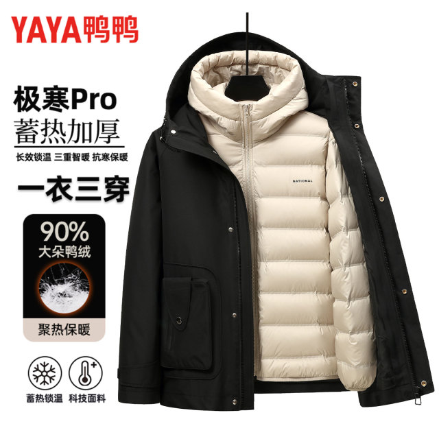 鸭鸭新款男短款三合一冲锋羽绒服 可脱卸内胆券后149元包邮
