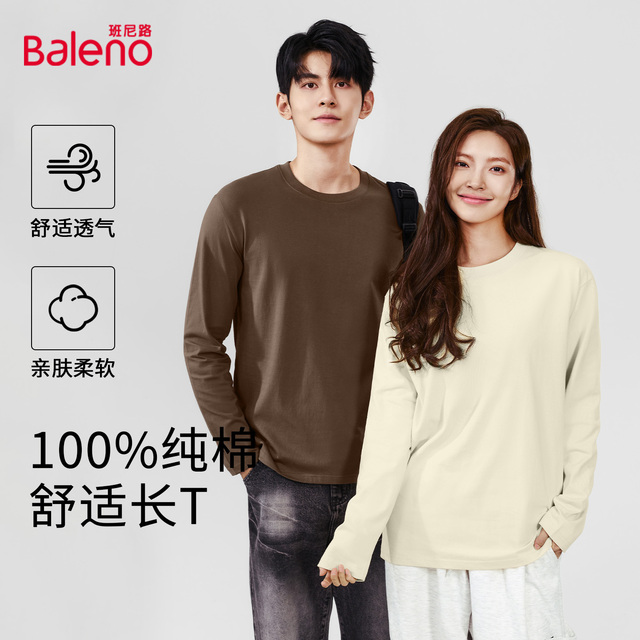 班尼路日系重磅220g纯棉短袖长袖情侣款 拍②件,券后59元包邮