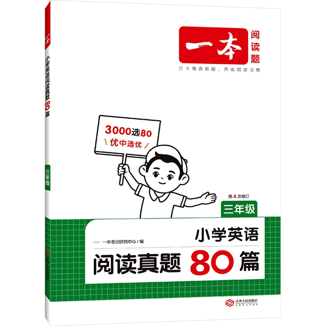 2026版一本小学英语阅读真题80篇,3-6年级适用,3000选80,优中选优,涵北京,江苏,浙江等教育发达地区的80篇优质题目,“三段式”答案解析+视频讲解,帮学生理清阅读技巧,学会举一反三,掌握必考考点,轻松拿高分~